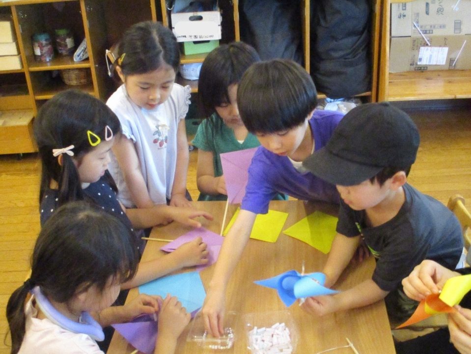 6月いっぱい準備してきた夕涼み会、当日はちょうどいいお天気で、お店屋さんを頑張ったりお買い物をしたりして楽しんでいました。準備中も話し合いの中で、自分の意見を言葉で伝えること、相手の意見を聞くこと、いろんな意見の中から一つに決めることなど、様々な経験が重ねられ、1人ひとりが大きく成長した夕涼み会でした。
