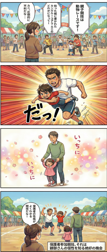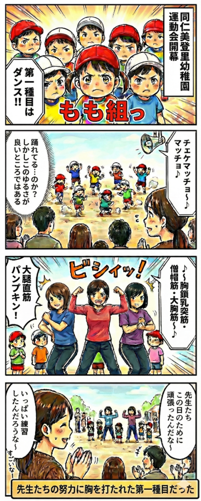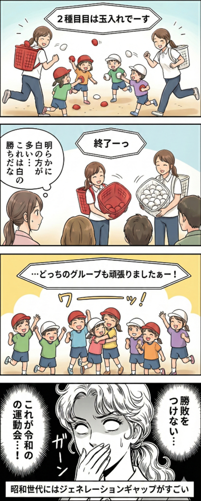 2025年10月11日、同仁美登里幼稚園の運動会が行われました。 ももぐみ(年少)さんの回の様子を、一保護者の視点からマンガ形式でお届けします。 ※幼稚園より:ももぐみ(年少)の競技で勝敗をつけていないのは、時代に合わせて……という意図ではなく「まずは競技を楽しむこと」などの狙いによるものです。また、きぐみ(年中)、みどりぐみ(年長)の競技では、勝敗をつけるものもあります。 (年少組保護者 P.N 母のはしくれ)