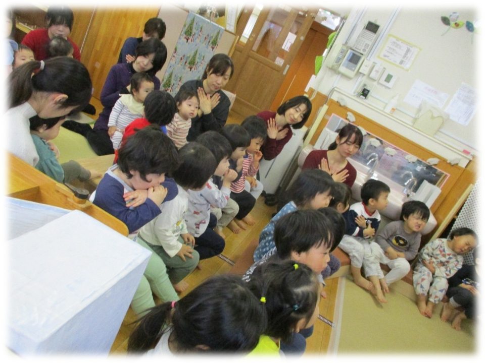 クランツのろうそくにあかりを灯してみんなでわくわくしながらひと月イエス様のお誕生を待ちました。