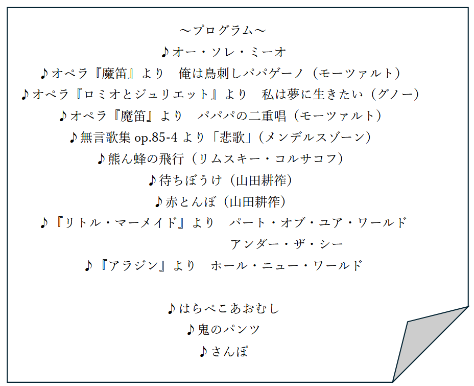 はらぺこあおむしや鬼のパンツなど子どもたちが大好きな歌も盛りだくさんでした。